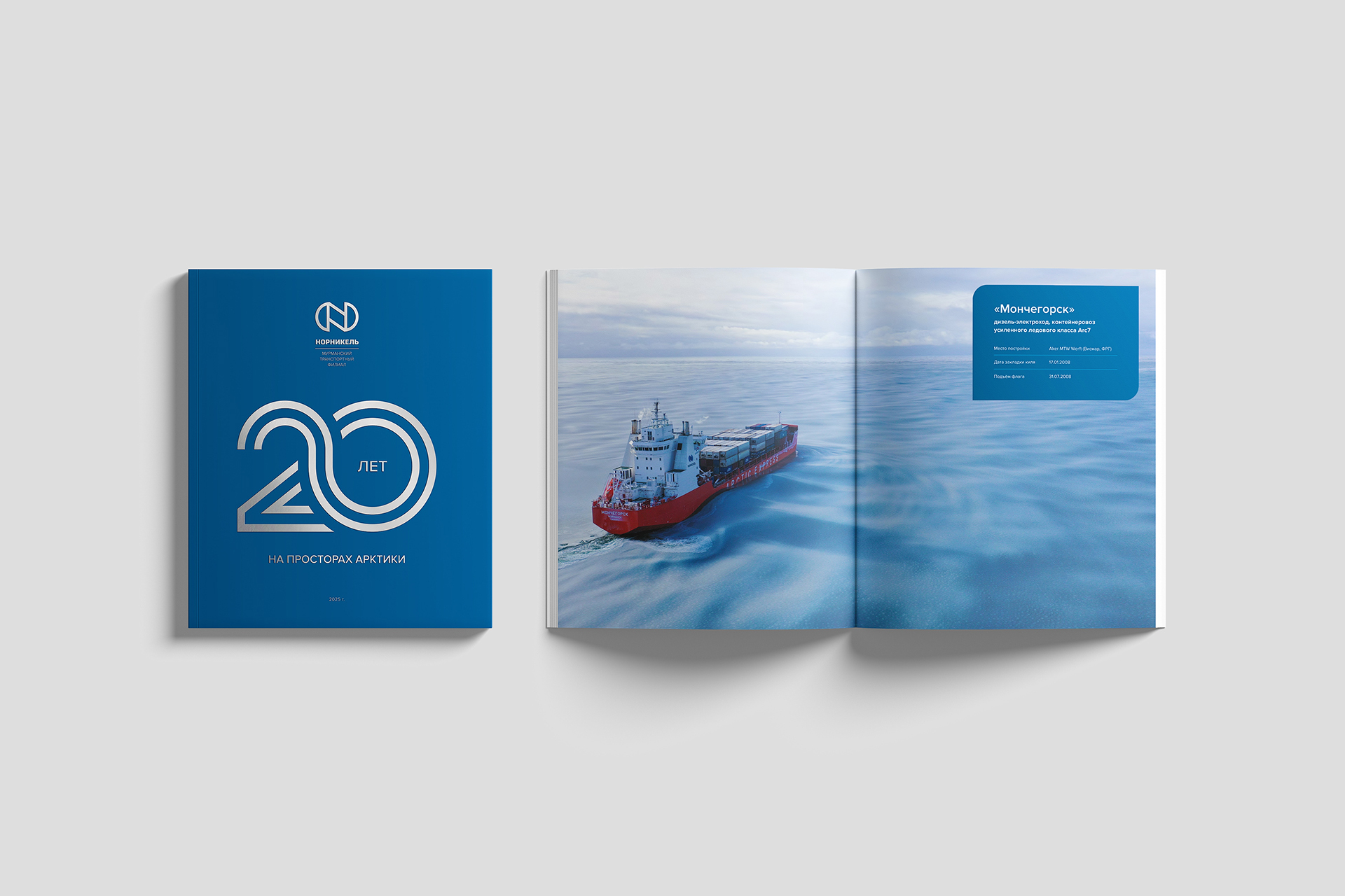 К 20-летию Мурманского транспортного филиала и в рамках празднования 90-летия компании «Норникель» перед нашей командой стояла задача создать юбилейное издание, которое не просто расскажет историю филиала, но и станет настоящей памятной книгой о людях, судах, инфраструктуре и роли МТФ в освоении Арктики.