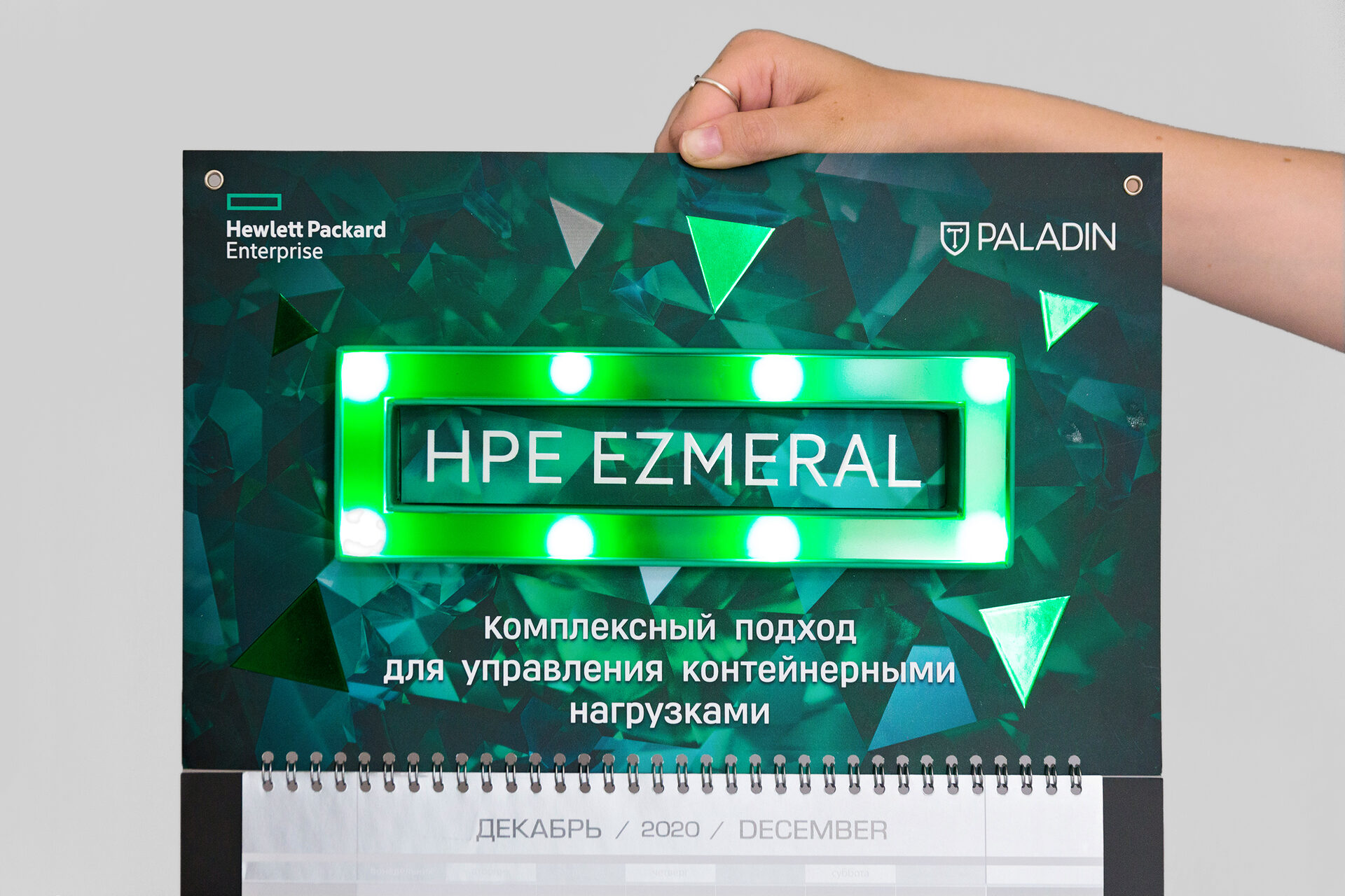 Визуальная концепция календаря построена на изумрудной графике, которая отражает название Ezmeral (от англ. emerald — изумруд).
