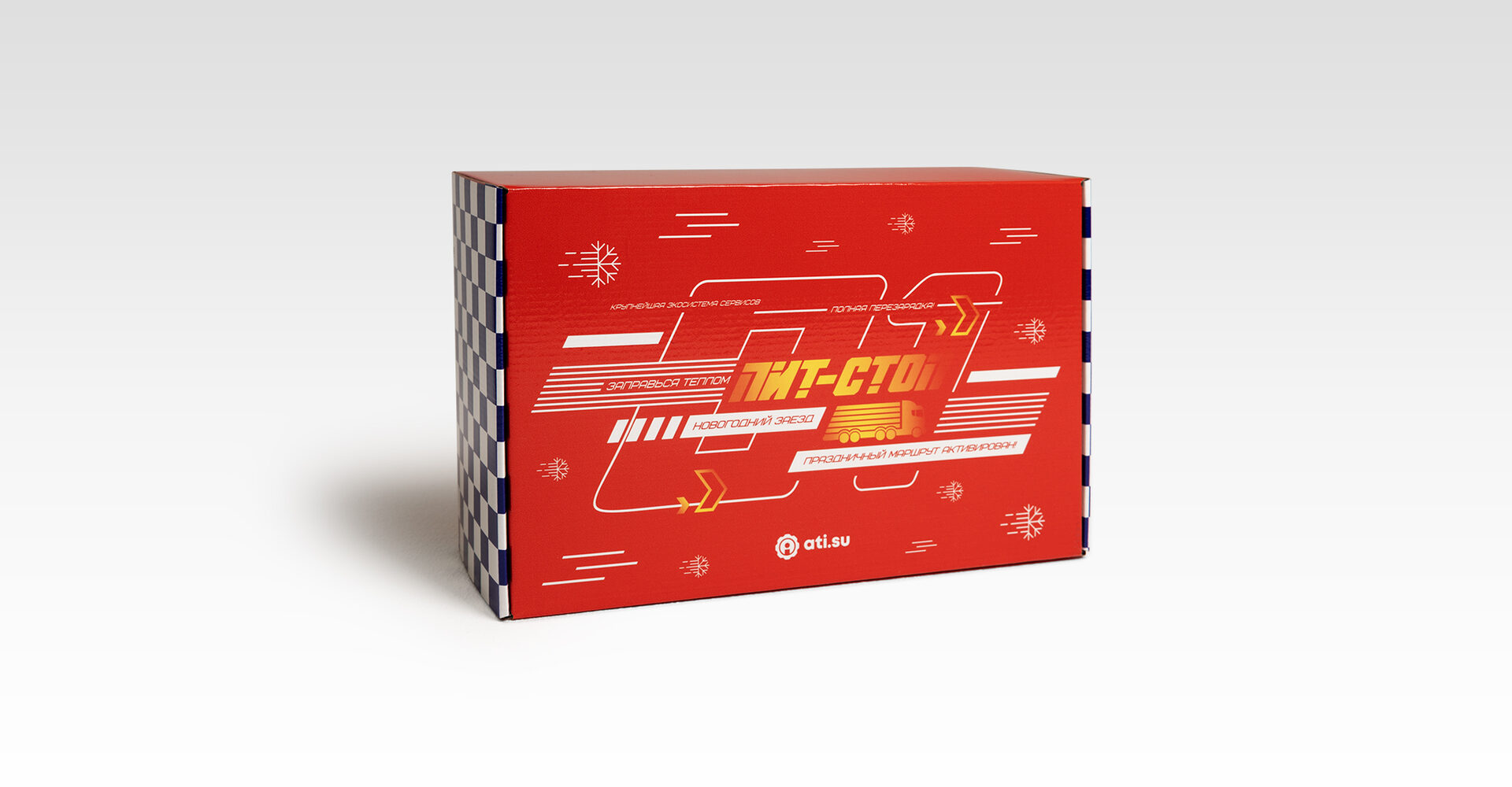 ATI.SU — крупнейшая биржа грузоперевозок, объединяющая профессионалов логистической отрасли. Перед нами стояла задача создать новогодний подарок категории «Стандарт», который отражал бы динамику индустрии, был полезным в повседневной жизни и формировал эмоциональную связь с брендом.